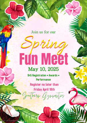 Participants will experience a competition like our competitive teams and even what they watch on TV. Athletes will showcase what they have been working in class on all Olympic apparatuses. The gym will be set up in meet format, parents, siblings, relatives and friends are invited to come into the gym for an up close view of the athlete’s performance. Each participating athlete receives uniform and an award!
